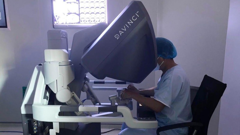 Với trường hợp bệnh nhân H., sau khi hội chẩn kỹ càng, các bác sĩ đã tư vấn cho người bệnh phẫu thuật bằng hệ thống Robot Davinci thế hệ Xi.