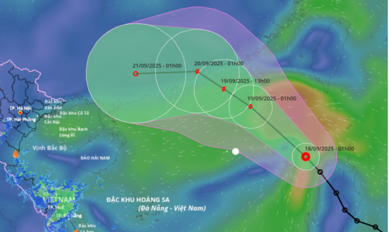 Theo Trung tâm Dự báo khí tượng thủy văn quốc gia, lúc 1h sáng 18-9, tâm áp thấp nhiệt đới đang ở trên vùng biển phía đông bắc khu vực bắc Biển Đông.