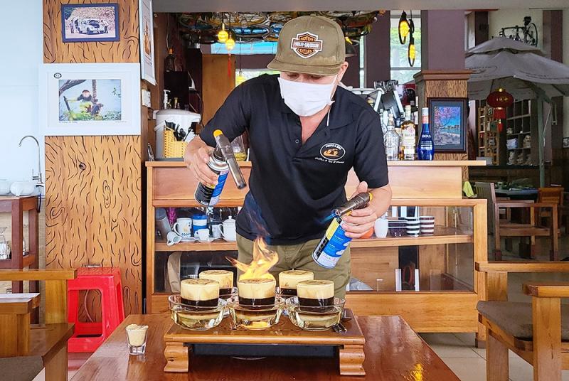 Thực khách gọi món cà phê Phượng Hoàng Lửa và xem ông Huy chế biến - GIA BÌNH