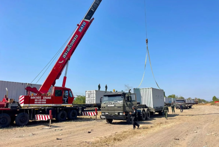 Binh lính Thái Lan được cho là đã dùng các container để "chiếm đóng" lãnh thổ đang tranh chấp tại tỉnh Banteay Meanchey - Nguồn: THAI PRESS