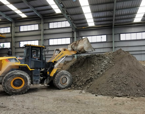 Khu vực chứa tro xỉ còn lại sau quá trình đốt rác của nhà máy. Ảnh: Thanh Liêm/TTXVN