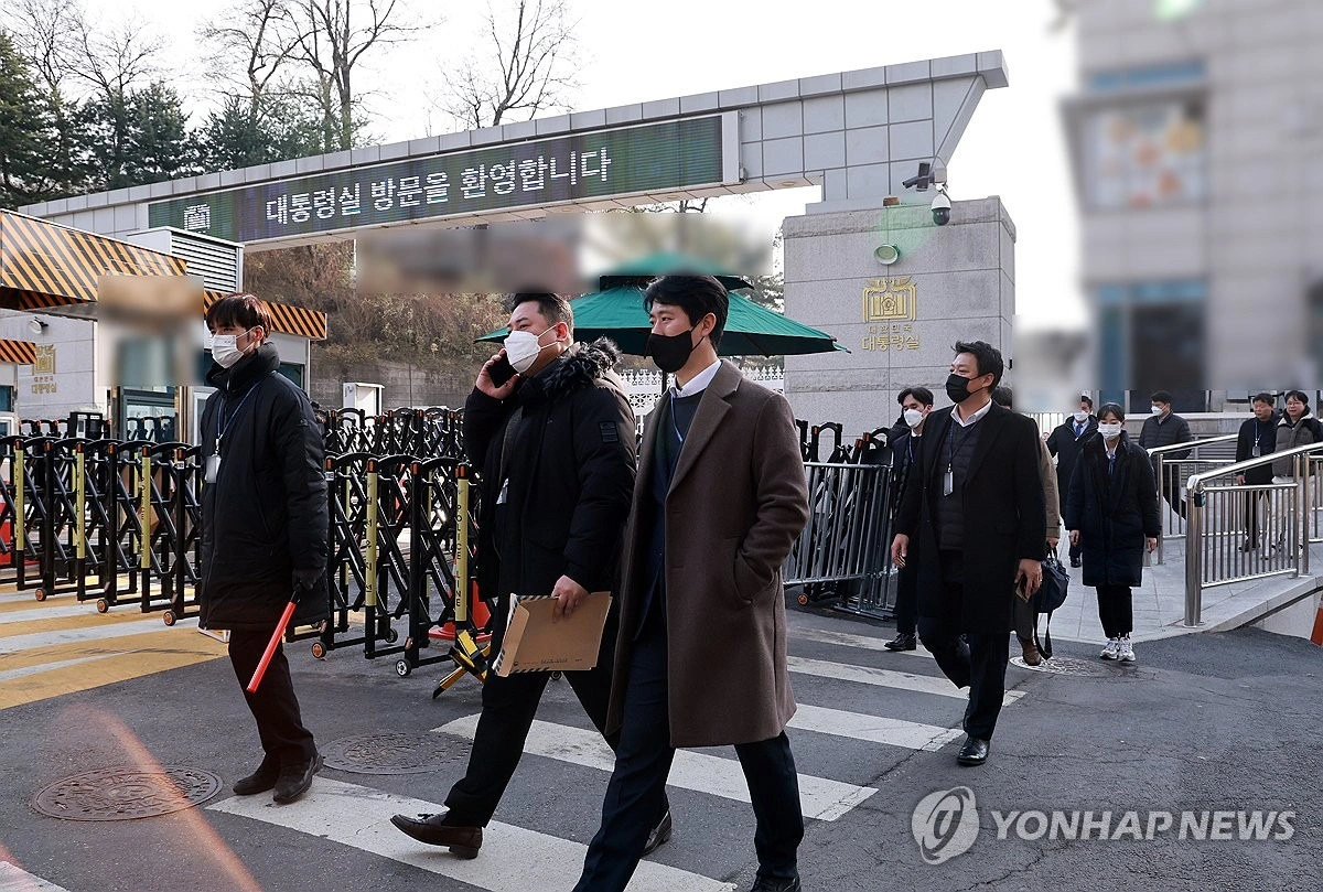 Cảnh sát Hàn Quốc thực hiện lệnh khám xét tại văn phòng Tổng thống Hàn Quốc Yoon Suk Yeol ngày 11-12 - Ảnh: YONHAP