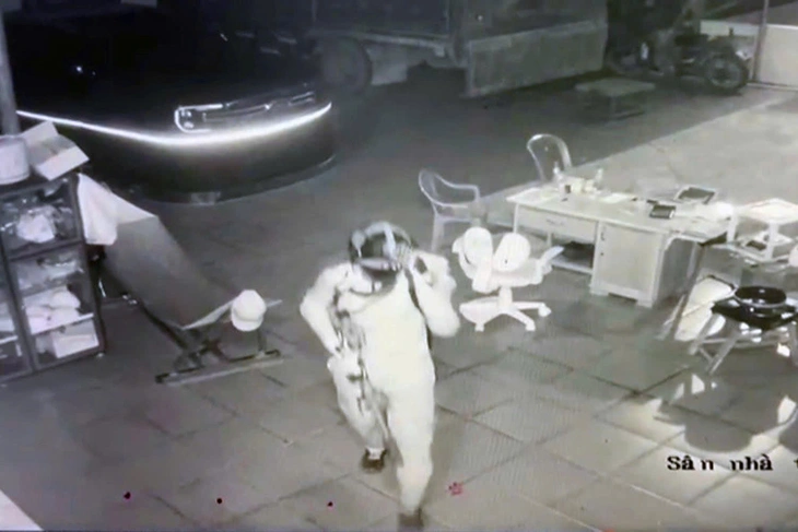 Thời điểm xảy ra vụ án có một người đàn ông đội mũ bảo hiểm trùm kín mặt xuất hiện trong sân nhà nạn nhân - Ảnh: Công an tỉnh Đồng Nai