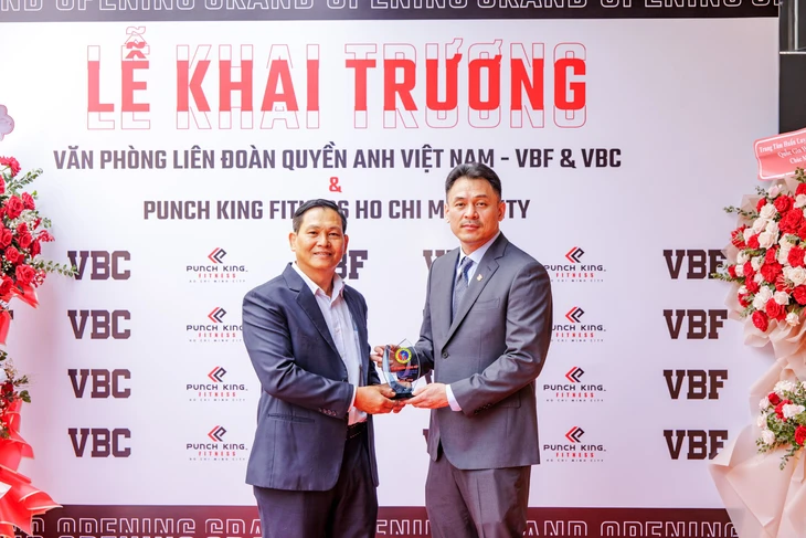 Ông Lưu Tú Bảo (phải) tại lễ khai trương văn phòng VBF hồi tháng 12-2024 - Ảnh: VBF