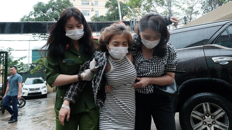 Trần Thị Thanh Hải được đưa từ bệnh viện về trụ sở Công an Q.Nam Từ Liêm vào sáng 1.4 - KIẾN TRẦN
