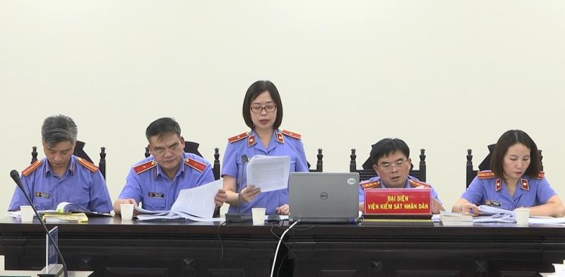 Đại diện VKSND hà Nội thực hiện quyền công tố tại phiên toà. Ảnh: Anh Hùng