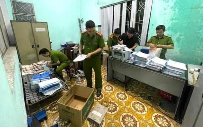 Cơ quan Công an tổ chức khám xét nơi làm việc của các bị can. Ảnh: TTXVN