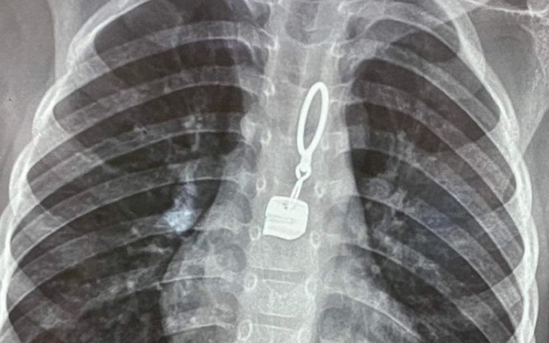 Qua chụp chiếu, các bác sĩ phát hiện trong thực quản của bệnh nhi có dị vật nên đã nhanh chóng chuyển đến Bệnh viện Đa khoa tỉnh Hà Tĩnh.