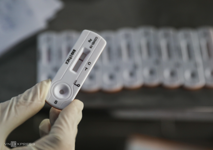 Nhân viên y tế TP HCM cầm kit test nhanh nCoV. Ảnh: Quỳnh Trần