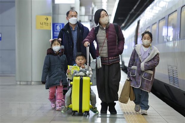 Người dân đeo khẩu trang phòng dịch COVID-19 tại ga tàu hỏa ở Seoul, Hàn Quốc, ngày 20/1/2023. (Ảnh: Yonhap/TTXVN)