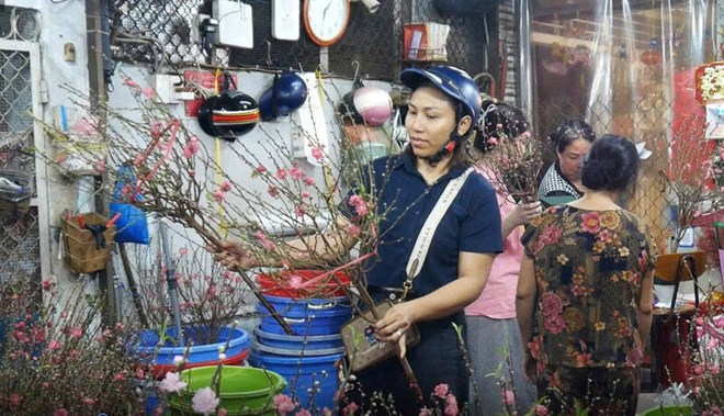 Bà Lưu Mộng Dung - tiểu thương chợ hoa Hồ Thị Kỷ cho biết, dịp Tết năm nay, đào mini và tuyết mai đều bán khá chạy. “Hoa đào và tuyết mai đều được khách hỏi mua nhiều, nhưng giá hoa đào thường cao hơn. Tuy vậy, nhờ giá năm nay mềm hơn nên sức mua nhìn chung vẫn tốt” - bà Dung nói.