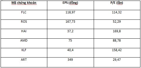 Ví các cổ phiếu “họ” FLC như FLC, ROS, HAI, KLF, AMD như “bong bóng”, bởi kết quả kinh doanh bết bát; nhiều năm liền lợi nhuận từ hoạt động khác, lợi nhuận tài chính luôn cao hơn lợi nhuận kinh doanh chính; lợi nhuận làm ra không đủ để trả lãi vay; tỉ suất lợi nhuận trên cổ phần (EPS) chỉ loanh quanh 100 - 200 đồng nhưng giá cổ phiếu thì được “thổi” đến mức P/E (hệ số giá trên lợi nhuận 1 cổ phiếu) lên đến cả trăm lần.