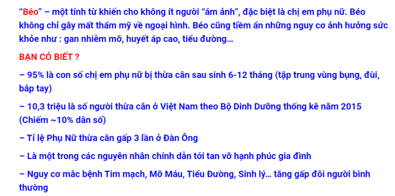 “Bên em nó là sản phẩm cao cấp dành cho người cơ địa khó giảm nên chị yên tâm nên định lượng thành phần nặng gấp đôi các sản phẩm khác, đảm bảo cơ địa của chị khó đến đâu cũng giảm thảo được lượng mỡ nhé”