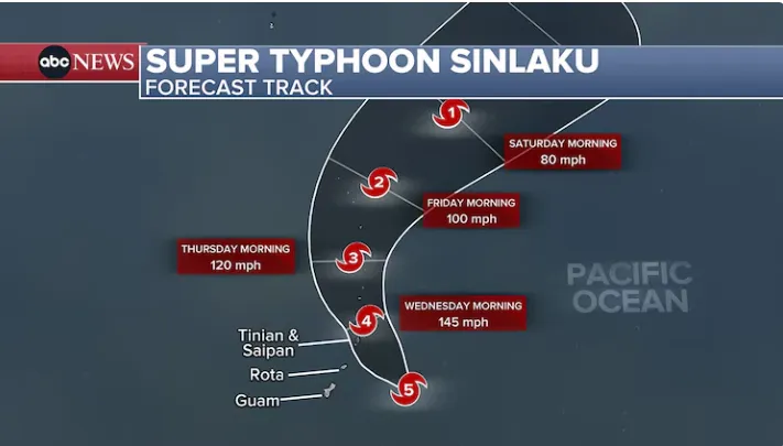 Theo cảnh báo của Cơ quan Dự báo Thời tiết Quốc gia Mỹ, bão Sinlaku có khả năng gây ra thiệt hại nghiêm trọng. Cơn bão được dự báo sẽ di chuyển gần Guam và có khả năng gây ra những ảnh hưởng đáng kể đến quần đảo Bắc Mariana trong những ngày tới.