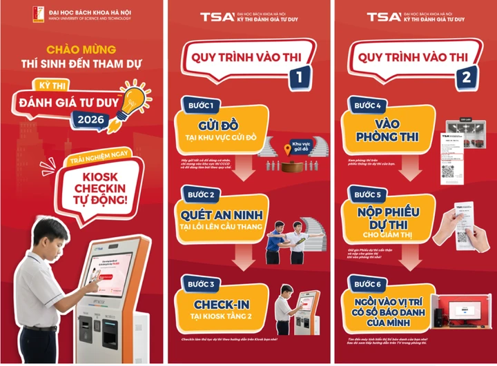 Nhà trường cho biết công tác chuẩn bị đã hoàn tất, toàn bộ thí sinh đã nhận được thông báo dự thi qua tài khoản MyTSA. Thí sinh cần kiểm tra kỹ thời gian, địa điểm dự thi và mang theo căn cước công dân để làm thủ tục.