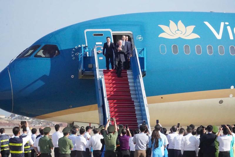 Ủy viên Bộ Chính trị, Phó Thủ tướng Thường trực Chính phủ Nguyễn Hòa Bình và đoàn đại biểu tới dự lễ khánh thành các công trình và khai trương chuyến bay đầu tiên tại sân bay Long Thành.