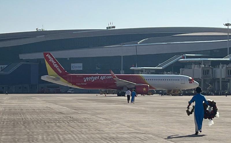 Máy bay Vietjet hạ cánh thuận lợi tại sân bay Long Thành trong ngày đón các chuyến bay đầu tiên. Ảnh: Hà Anh Chiến - Như Quỳnh