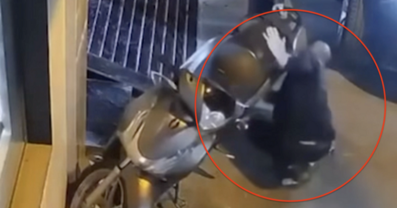 Do xe máy dựng trước cửa chắn lối đi nên ô tô không thể di chuyển qua. Lúc này, tài xế ô tô bấm còi. Một người trong nhà chạy ra định dắt xe máy vào trong nhưng do xe đã khóa cổ nên không thể di chuyển. Sau đó, một người đàn ông khoảng ngoài 30 tuổi mặc quần áo màu đen bước xuống từ ô tô, dùng vật nhọn đâm vào lốp trước và lốp sau của chiếc xe máy khiến cả hai lốp bị thủng, rồi lên xe rời khỏi hiện trường.