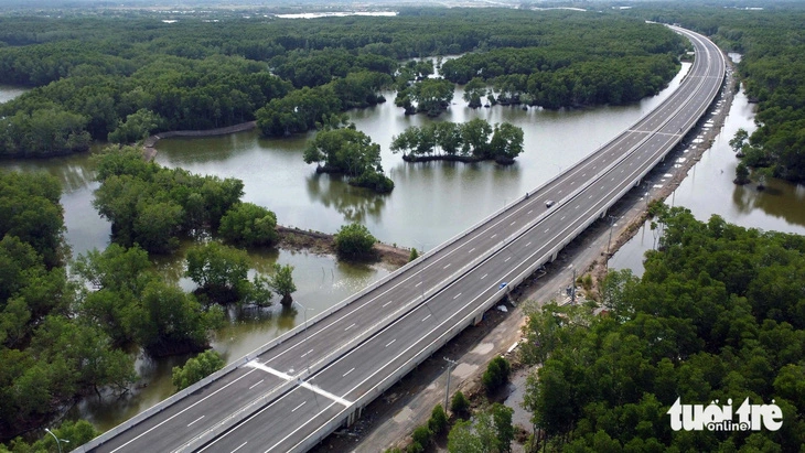 Cao tốc Bến Lức - Long Thành như dải lụa đi xuyên rừng ngập mặn - Ảnh: A LỘC