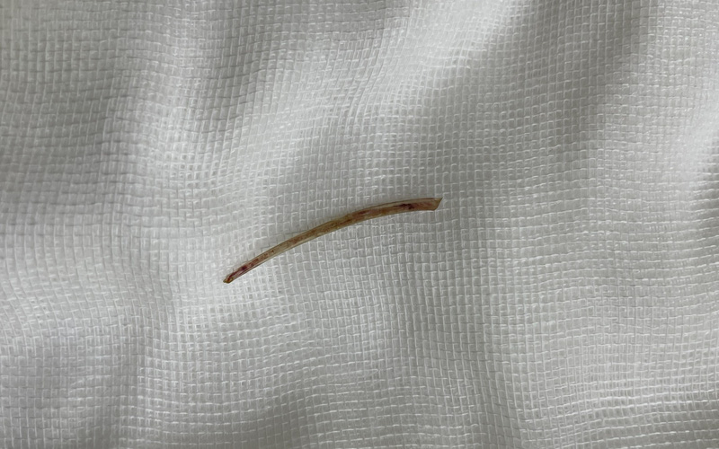 Mảnh xương cá khiến bệnh nhân bị thủng ruột. Ảnh: BVCC