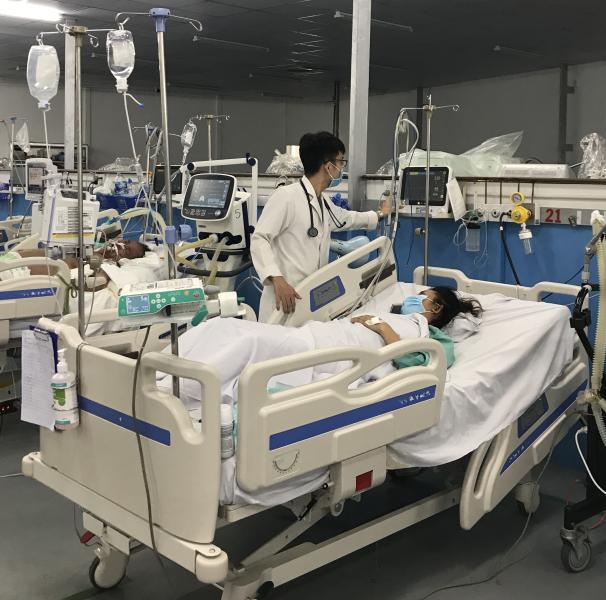 Điều trị bệnh nhân sốt xuất huyết nặng tại khoa ICU bệnh viện Trưng Vương - Ảnh: Bích Thủy