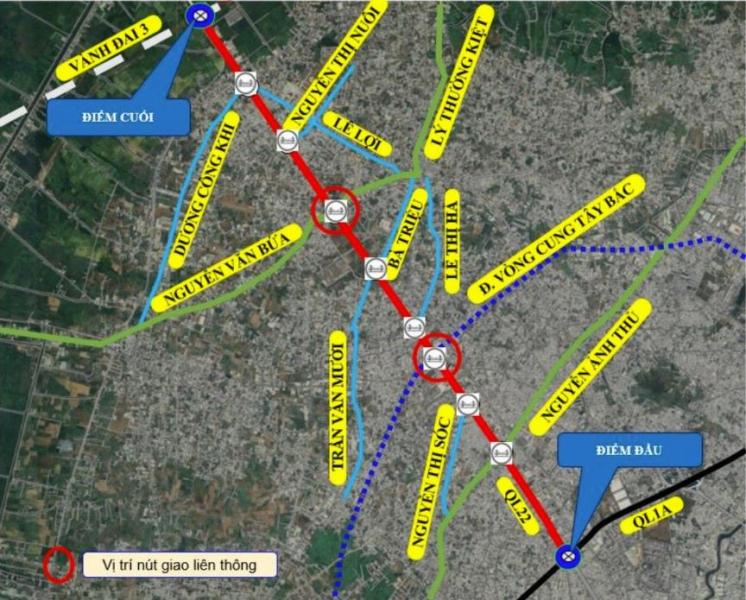 Công trình đi qua phường Trung Mỹ Tây (Quận 12 trước đây) và các xã Bà Điểm, Hóc Môn, Xuân Thới Sơn (huyện Hóc Môn trước đây) với chiều dài hơn 8km, mặt cắt ngang 60m.