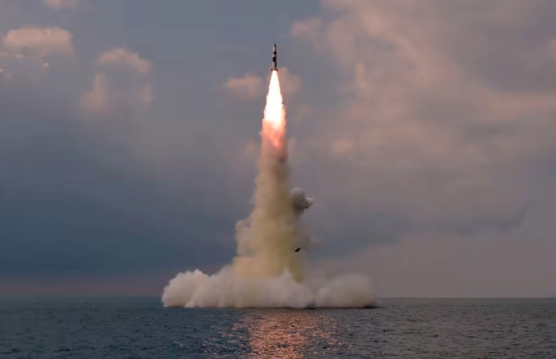 Một vụ phóng tên lửa đạn đạo của Triều Tiên từ tàu ngầm năm 2021. Ảnh: KCNA.
