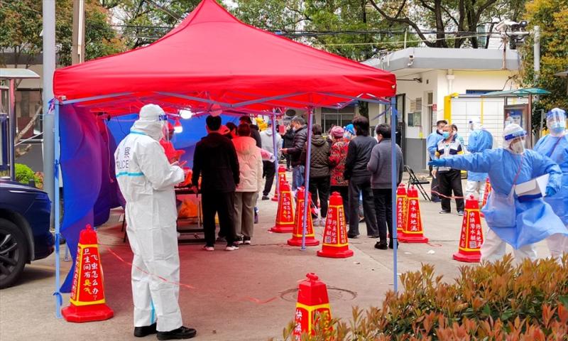Người dân Thượng Hải, Trung Quốc chờ xét nghiệm COVID-19. Ảnh: CFP