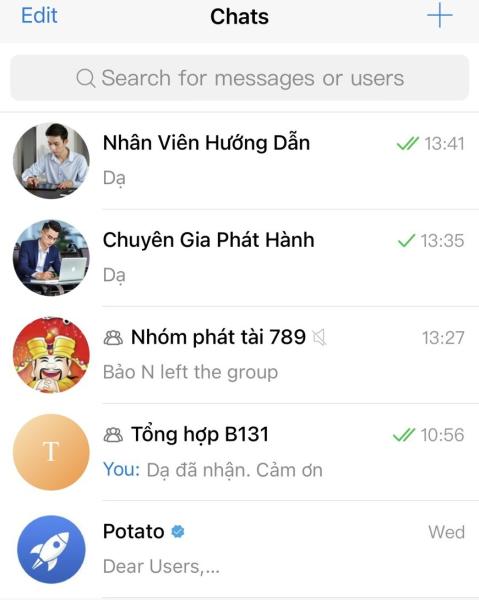 Trên ứng dụng Potato, ông H. được hướng dẫn làm việc, cho vào nhiều hội nhóm để thực hiện các nhiệm vụ - ẢNH CHỤP MÀN HÌNH