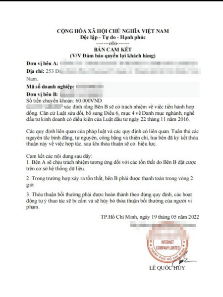 Trước khi chuyển tiền trong nhiệm vụ phúc lợi, ông H. được gửi một bản cam kết - NVCC