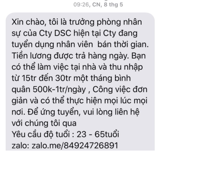 Nhiều tin nhắn chào mời làm việc hấp dẫn mà nhiều người nhận được trong thời gian gần đây - ẢNH CHỤP MÀN HÌNH