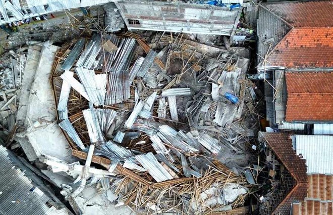 Hiện trường vụ sập trường học ở Indonesia. Ảnh: Xinhua