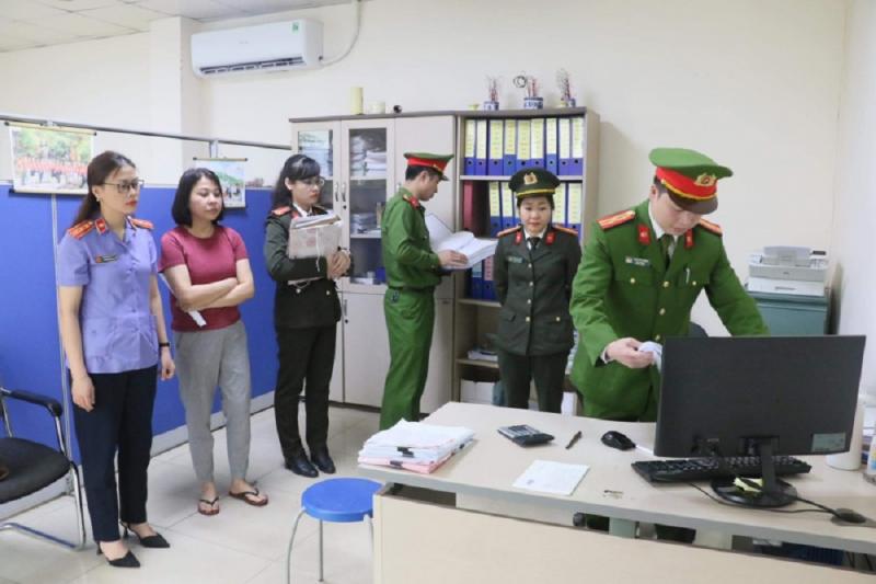 Lực lượng chức năng tiến hành khám xét Công ty cổ phần CNTT Lam Hồng. Ảnh: Công an Nhân dân
