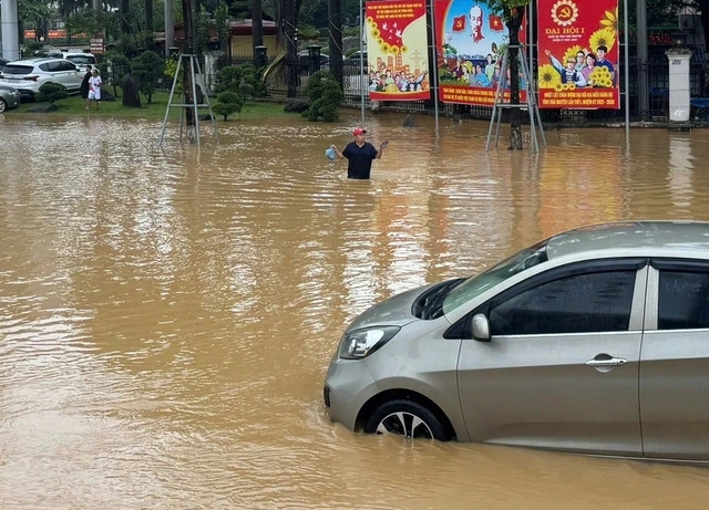 Phản ánh với Thanh Niên, nhiều người dân ở khu vực trung tâm TP.Thái Nguyên cũ cho biết, đến sáng nay, mực nước trên nhiều tuyến phố vẫn ngập sâu, ô tô, xe máy không thể lưu thông.