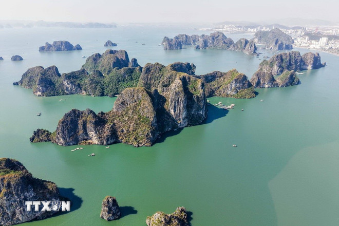Vịnh Hạ Long có 1969 hòn đảo, chủ yếu là đảo đá vôi. (Ảnh: Hoàng Hiếu/TTXVN)
