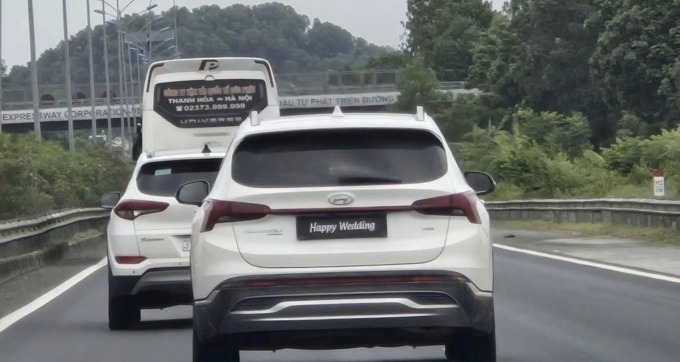 Báo điện tử VTC News đưa tin, ngày 18/8, Đội CSGT đường bộ cao tốc số 3, Phòng 6 (Cục CSGT, Bộ Công an) lập biên bản xử phạt 23 triệu đồng đối với tài xế ô tô Hyundai Santa Fe che biển số bằng dòng chữ "Happy Wedding".