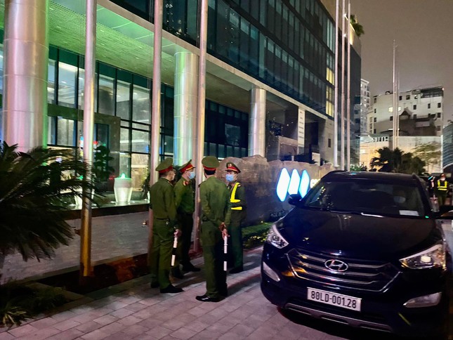 Cảnh sát làm việc tại trụ sở FLC tối 29/3. Ảnh: CAND