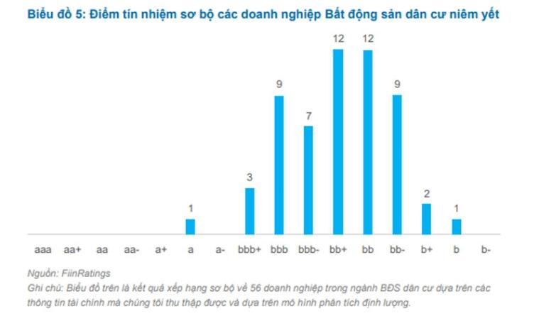 Theo FiinGroup, sức khỏe tài chính các công ty bất động sản về tổng thể vẫn ở mức tương đối an toàn, ngoại trừ các công ty dự án được lập ra nhằm mục đích huy động vốn trái phiếu hoặc vay vốn tín dụng ngân hàng, ngành BĐS nói chung và phân khúc BĐS dân cư nói riêng vẫn cơ bản có mức độ đòn bẩy tài chính ở mức thấp tương đối so với giai đoạn năm trước. Điều này thể hiện qua một số chỉ tiêu chủ chốt khi đánh giá năng lực tín dụng bao gồm: Hệ số Nợ vay/Vốn chủ sở hữu của các đơn vị BĐS dân cư niêm yết hiện đang ở mức 0,7 lần; Hệ số đánh giá năng lực trả lãi EBITDA/Chi phí lãi vay ở mức 1,8 lần; và hệ số bao phủ nợ ngắn hạn ở mức 3,8 lần vào cuối 2021.