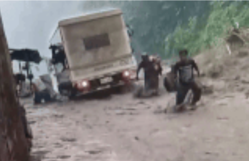 Mưa lớn gây ra lũ quét tại làng Tagpangi và khu vực cầu Mangalay (làng Dansolihon). Ảnh cắt từ video chính quyền thành phố Cagayan de Oro