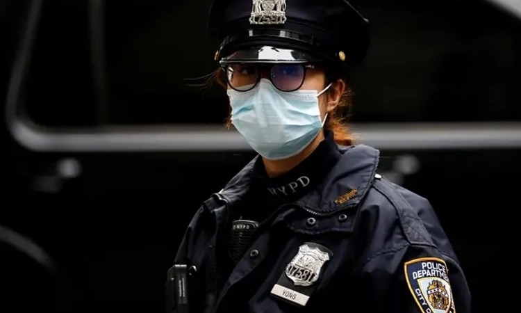 Sĩ quan cánh sát New York thực hiện nhiệm vụ ở Manhattan hồi tháng 3/2020. Ảnh: Reuters.
