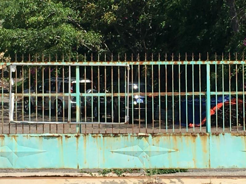 Xe ô tô của Bộ Công an và Sở TN-MT Bình Thuận bên trong cổng sắt của dự án "Bồng lai tiên cảnh Mũi Né" sáng 25.4 - CHÍ CÔNG