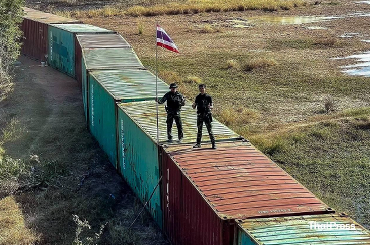 Binh lính Thái Lan được cho là đã dùng các container để "chiếm đóng" lãnh thổ đang tranh chấp tại tỉnh Banteay Meanchey - Nguồn: THAI PRESS
