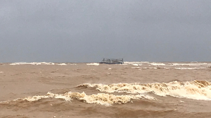 1 tàu cá đã đang nhập lạch Cửa Việt thì bị chết máy, mắc cạn. May mắn 8 thuyền viên đã được cứu vào bờ an toàn