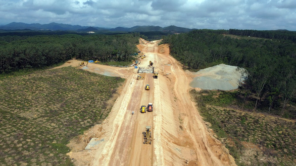 Thi công nền đường cao tốc Cam Lộ - La Sơn là 1 trong 11 dự án thành phần đường cao tốc Bắc - Nam giai đoạn 2017-2020 - Ảnh: TRẦN HUY HÙNG