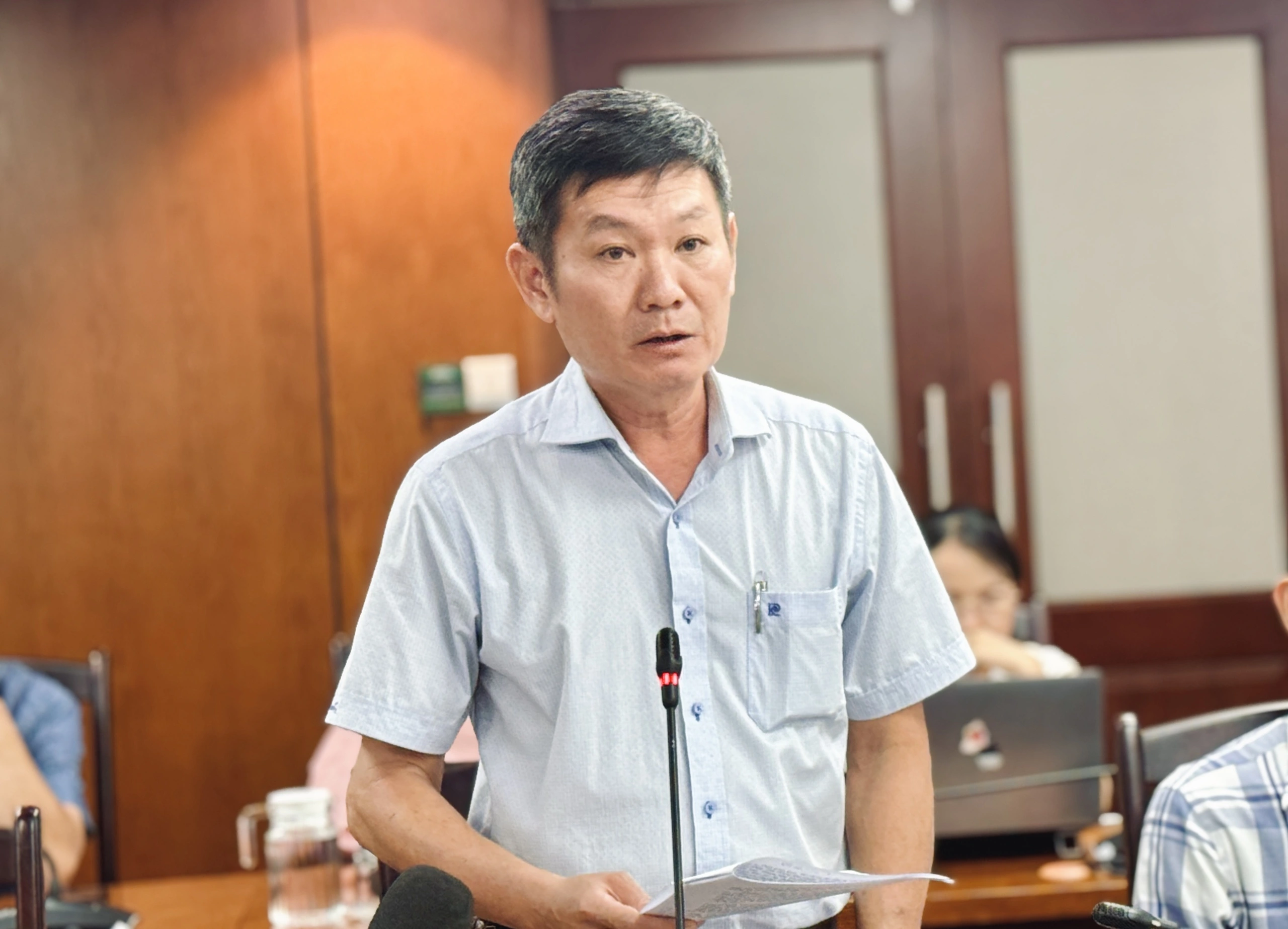 Ông Mai Thanh Tùng, đại diện Sở Xây dựng TP.HCM thông tin các tuyến đường bị ngập nước do triều cường ở TP.HCM - ẢNH: VŨ PHƯỢNG