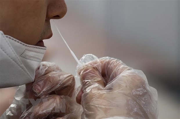 Người dân lấy mẫu xét nghiệm COVID-19 tại Seoul, Hàn Quốc. (Ảnh: THX/TTXVN)