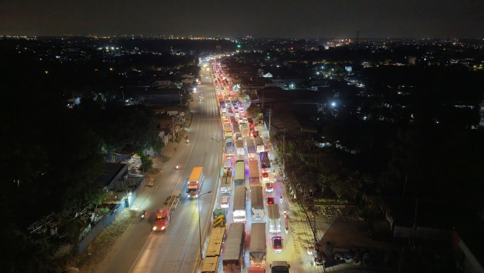 Kẹt xe kéo dài trên quốc lộ 51, tối 16/4. (Ảnh: Phước Tuấn).
