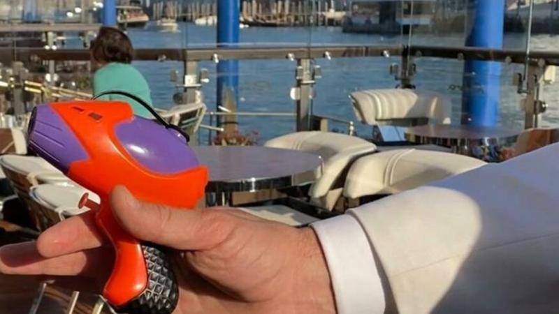 Một khẩu súng nước dành cho du khách bắn chim ở Venice - ẢNH CHỤP MÀN HÌNH THE TIMES