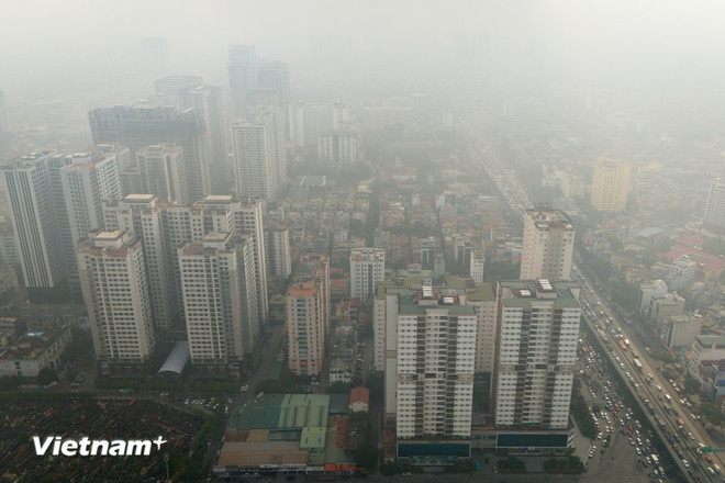 Trong suốt nhiều ngày qua, thành phố Hà Nội liên tiếp “chìm” trong ô nhiễm không khí. (Ảnh: Hoài Nam/Vietnam+)
