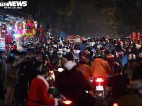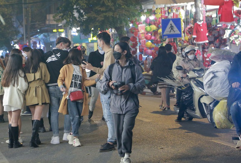Theo ghi nhận trên VTC News, từ 18h phố Hàng Mã (phường Hàng Mã, Hoàn Kiếm, Hà Nội) đông kín người qua lại. Con phố nhộn nhịp, biển người chen chân vui chơi, đón Noel khiến giao thông phố Hàng Mã ùn ứ.